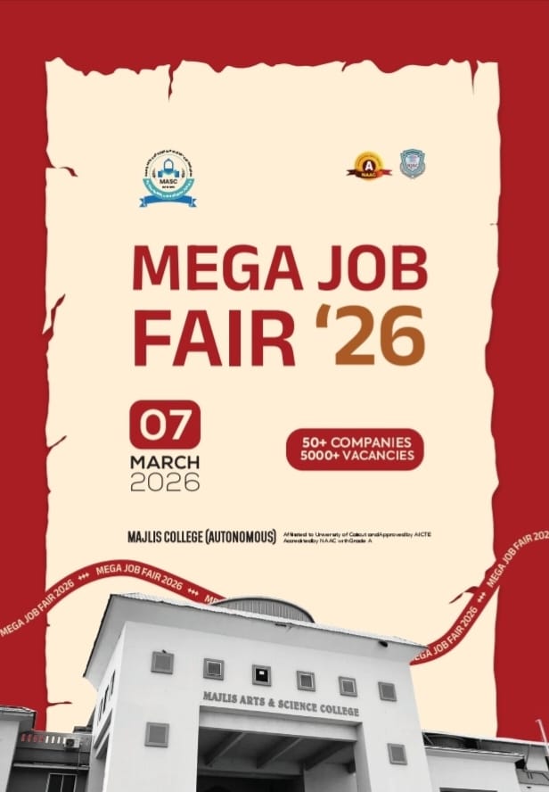 Majlis College (Autonomous) proudly announces Mega Job Fair 2026 on 07 March 2026, featuring 50+ leading companies and 5000+ job vacancies. Donโt miss this exceptional opportunity to connect with top recruiters and take the next step toward a successful career.