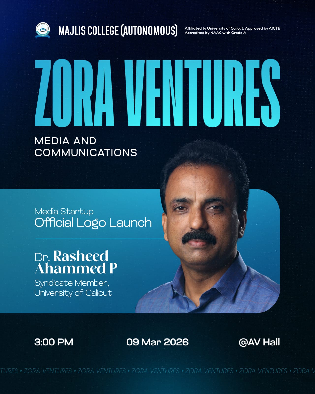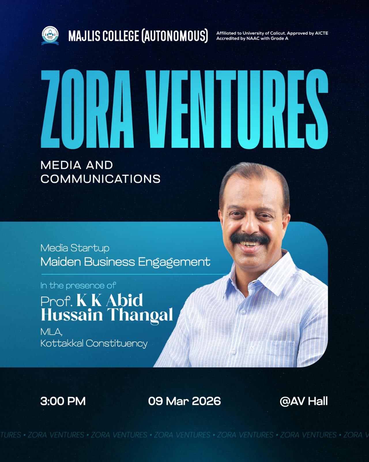 Majlis Arts and Science College (Autonomous) is launching ZORA Ventures – Media and Communications, a media startup initiative designed to encourage student innovation, digital creativity, and entrepreneurial engagement in the media industry.