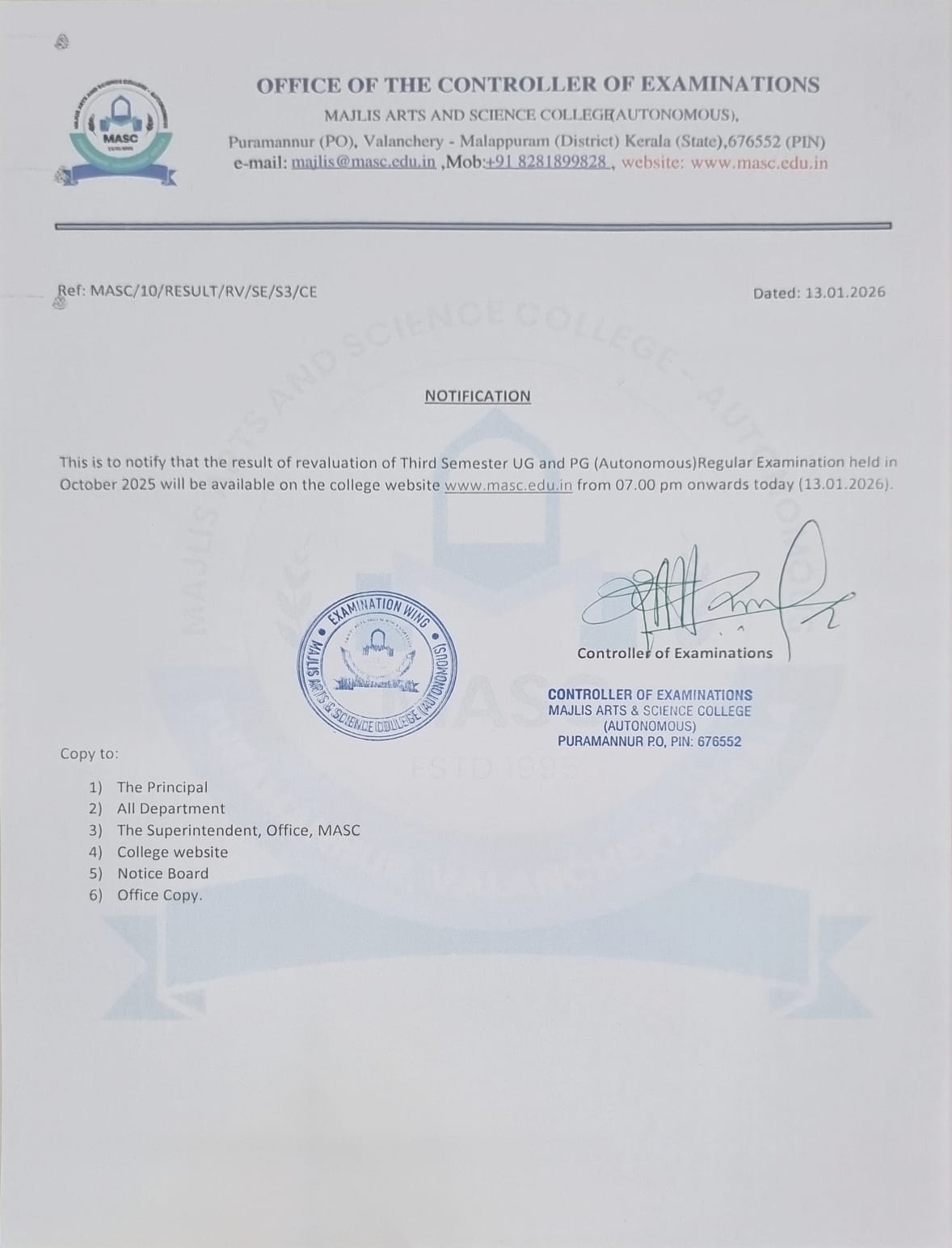 THE RESULTS OF THE FIRST SEMESTER UG & PG (AUTONOMOUS) REGULAR / SUPPLEMENTARY / IMPROVEMENT EXAMINATIONS โ NOVEMBER 2025 WILL BE PUBLISHED ON THE COLLEGE WEBSITE |